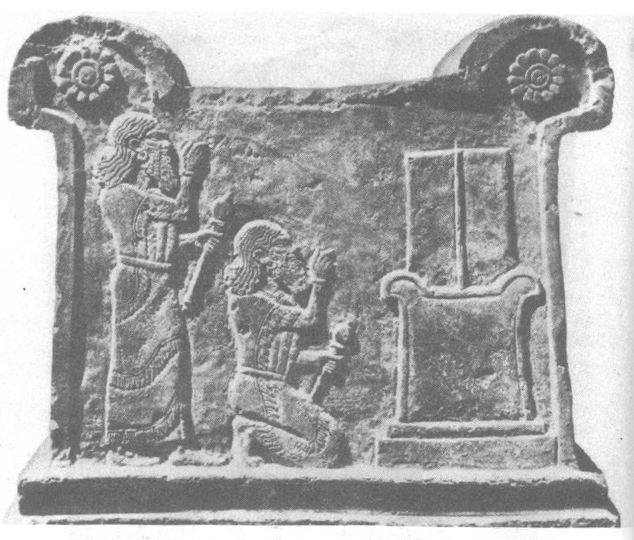 Sceny hołdu, czołobitności czy prezentacji w czasie pokoju związane były między innymi z ideą praworządności. Ukazują one stojącego władcę (lub innych ludzi przed obliczem władcy lub bóstwa), modlitewnym gestem pozdrawiającego bóstwo, które siedzi na tronie. Zawsze obowiązywała hierarchie, podkreślona różnicą wzrostu. W okresie dominacji Asyrii spotyka się jeszcze płaskorzeźby przedstawiające władcę i oficera, namiestnika królewskiego i pisarza. Ten rodzaj pomników kontynuowany był przez Babilonię po upadku Asyrii.