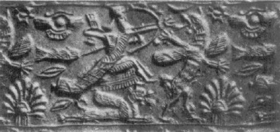 Na pieczęciach asyryjskich przede wszystkim eksponowane są sceny kultowe i sceny hołdownicze przed obliczem króla. Także chętnie przedstawiano symbole i atrybuty bogów oraz tematy mitologiczne (Fig.12), na przykład skrzydlate gryfy oraz inne mitologiczne zwierzęta i monstra. Wśród nich pojawia się motyw walki herosa z fantastycznymi stworami lub realnymi zwierzętami. Pomimo niewielkich rozmiarów pieczęci rysunek jest zazwyczaj doskonały.